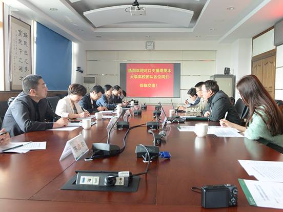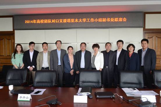4月9日上午,2014年高校团队对口支援塔里木大学工作小组秘书处联席会在中农东区主楼513会议室举行。联席会旨在总结2013年对口支援工作,对2014年对口支援进行研讨。中国农业大学副校长龚元石,党政办公室副主任李青山;浙江大学地方合作处副处长程荣霞、北京化工大学合作交流部部长何雨骏、东华大学教务处副处长姚卫新,我校对外交流合作处处长李志军等参加联席会议。